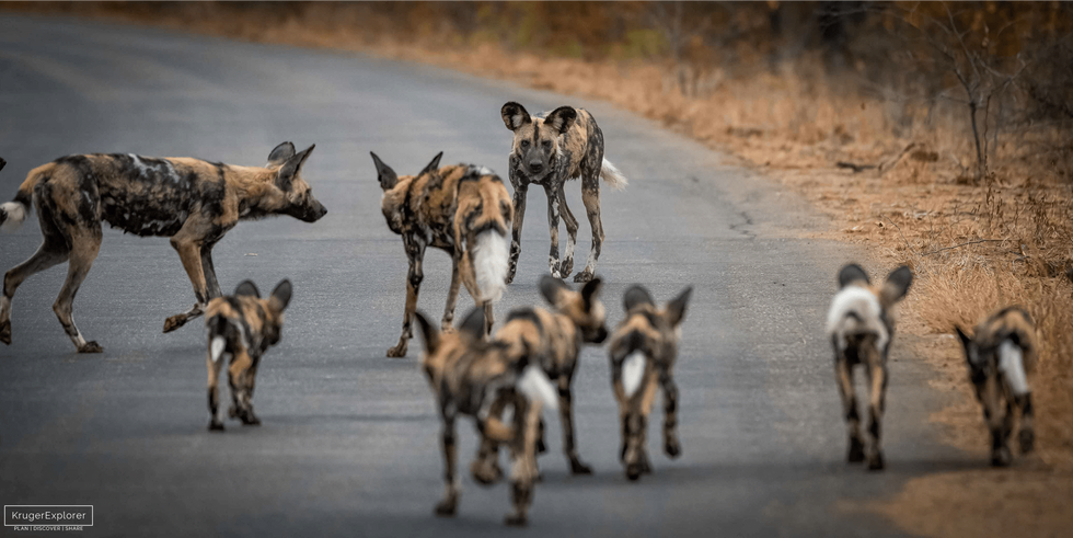 The spectacular African wild dog is a dog species found in Kruger National Park. There are fewer than 300 wild dog found in the park, yet its diurnal nature and highly active behaviour means that sightings are surprisingly frequent and a real highlight of any safari drive.